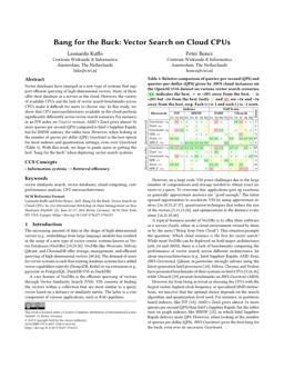 Kuffo Rivero, L. X., & Boncz, P. (2025). Bang for the Buck: Vector search on cloud CPUs. In Proceedings of the International Workshop on Data Management on New Hardware. doi:10.1145/3736227.3736233 |